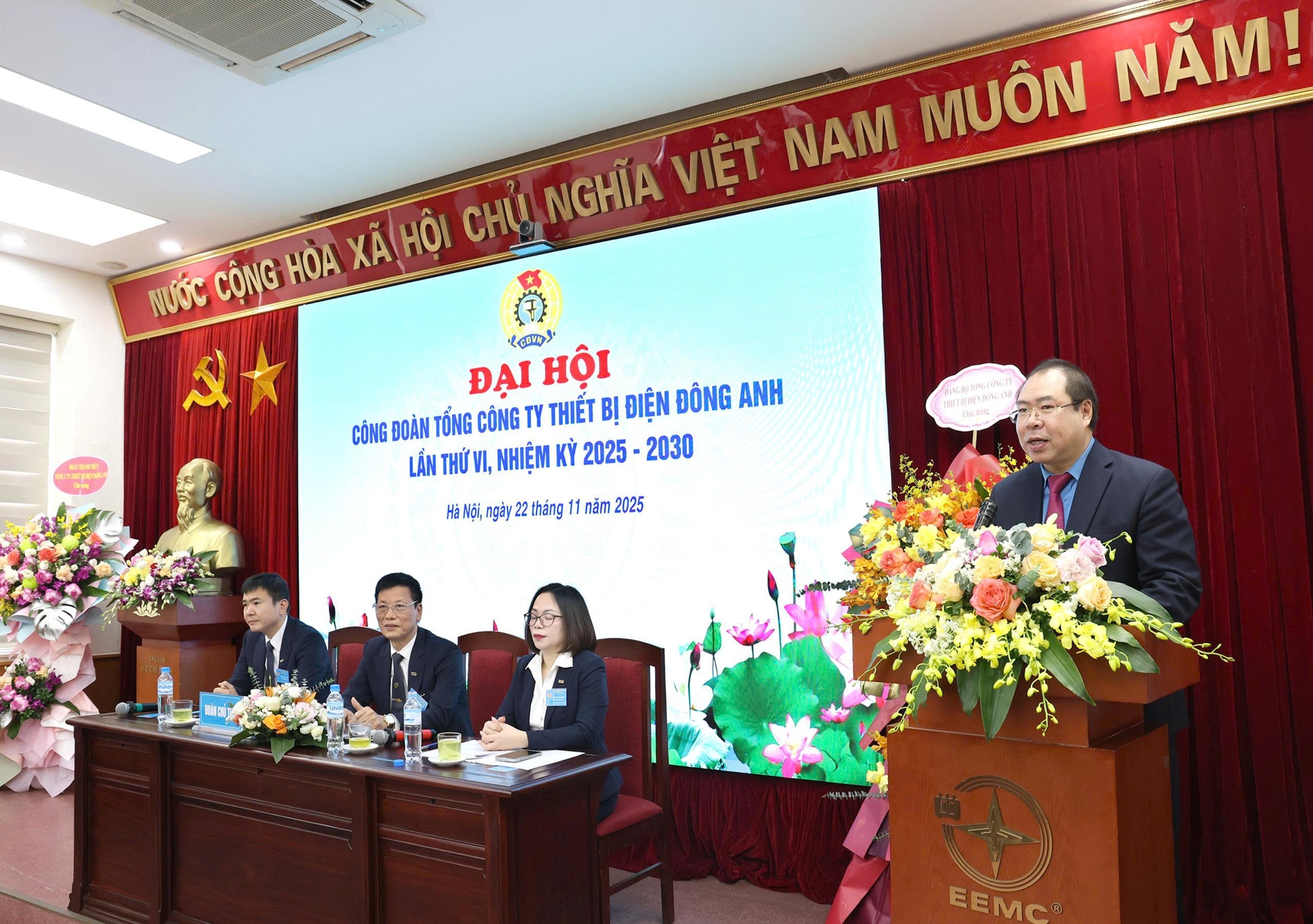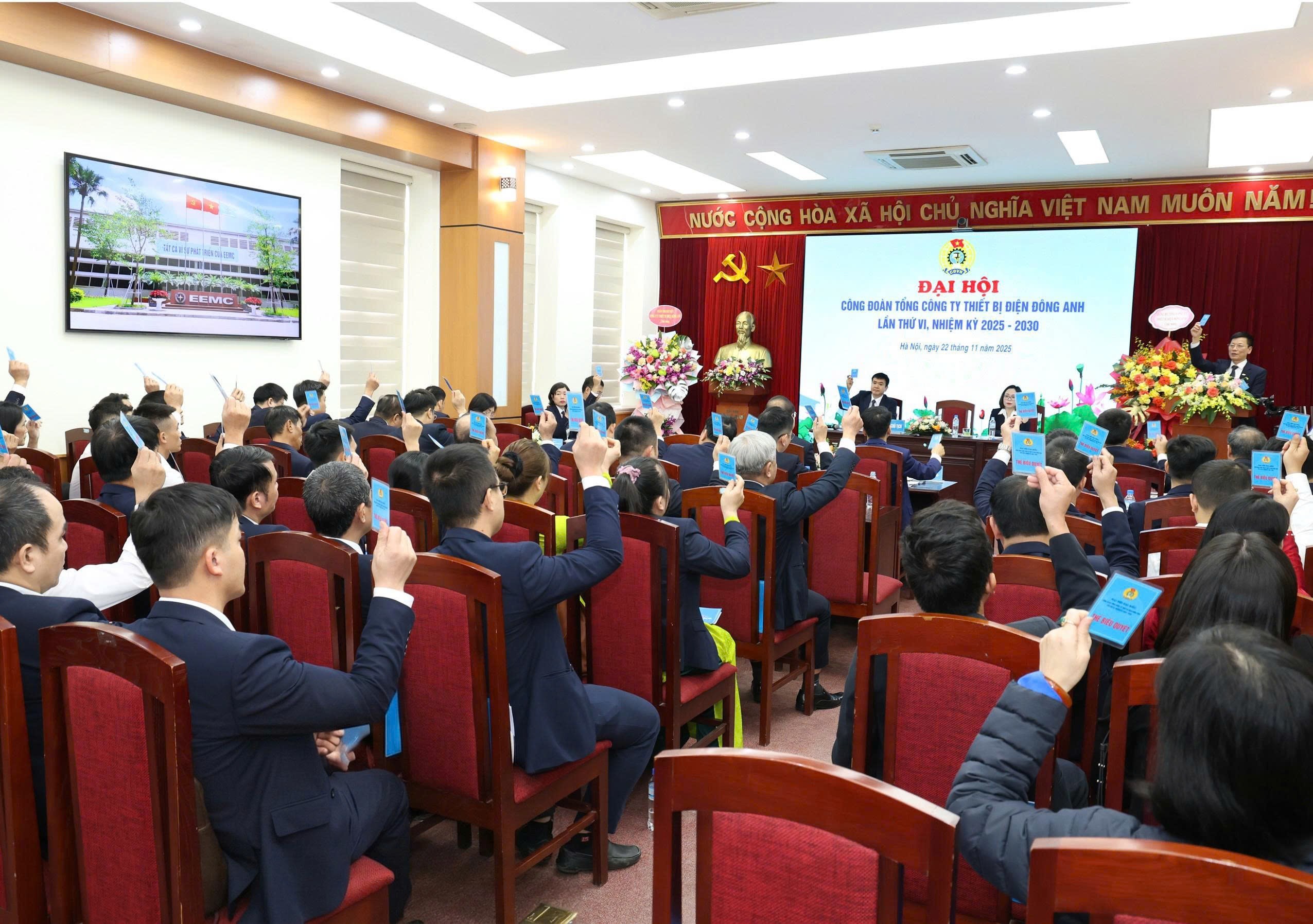 Sáng 22/11/2025, Công đoàn Tổng công ty Thiết bị điện Đông Anh (EEMC) đã tổ chức thành công Đại hội Công đoàn lần VI, nhiệm kỳ 2025–2030. Với phương châm “Đoàn kết – Dân chủ – Kỷ cương – Đổi mới – Phát triển”, Đại hội là dấu mốc quan trọng, thể hiện ý chí và khát vọng của đoàn viên, người lao động, hướng tới xây dựng tổ chức công đoàn vững mạnh và góp phần phát triển EEMC bền vững trong giai đoạn mới.