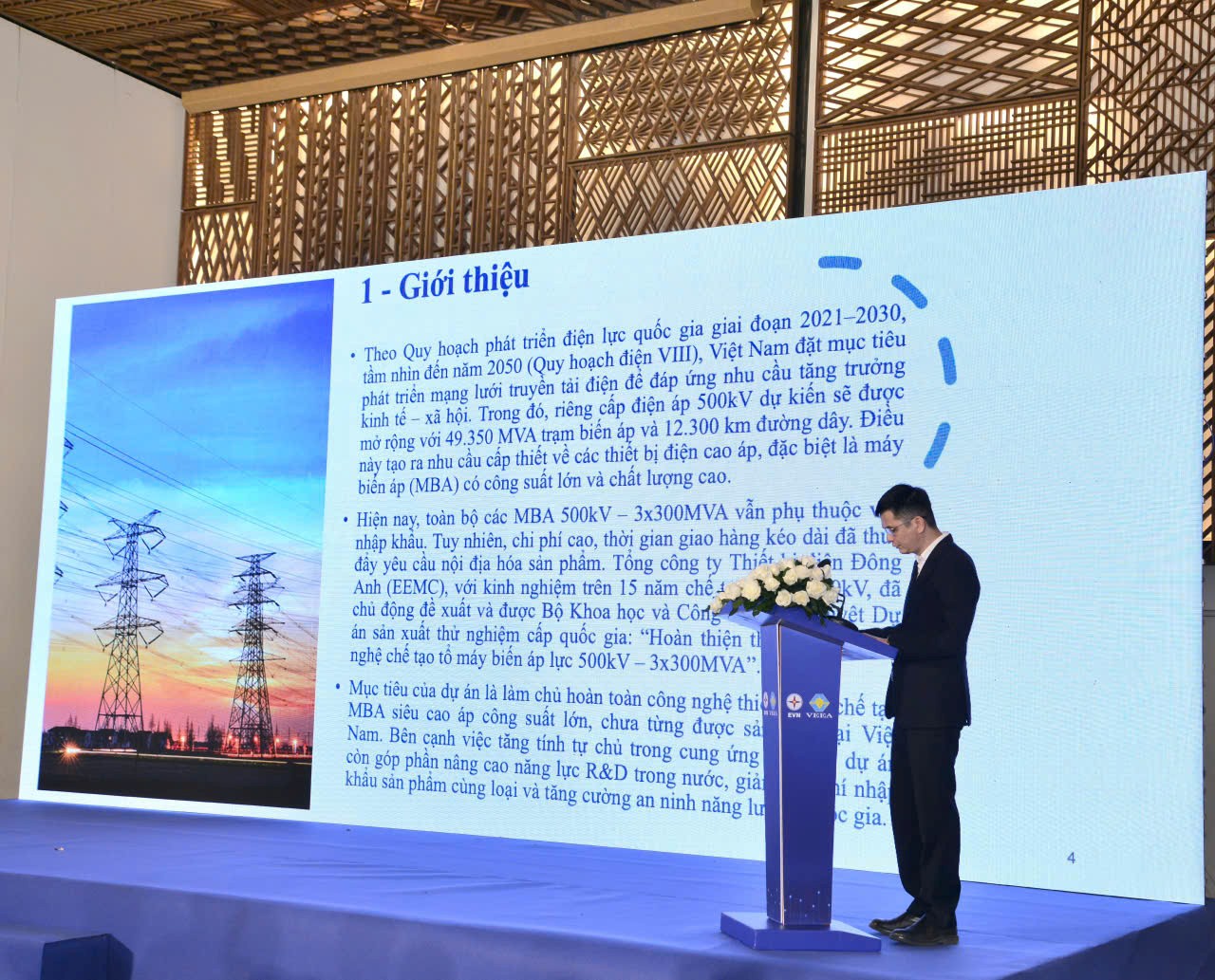 Tham dự Techshow, đồng chí Nguyễn Hải Quân – Phó Tổng giám đốc trình bày tham luận tại phân ban truyền tải với chủ đề “Quá trình nghiên cứu chế tạo tổ máy biến áp lực 500kV – 3x300MVA tại Tổng công ty Thiết bị điện Đông Anh, đáp ứng yêu cầu vận hành trên lưới điện truyền  tải Quốc gia”. Bài tham luận được các chuyên gia đánh giá cao về hàm lượng khoa học và công nghệ trong thiết kế máy biến áp 500kV -3x300MVA.