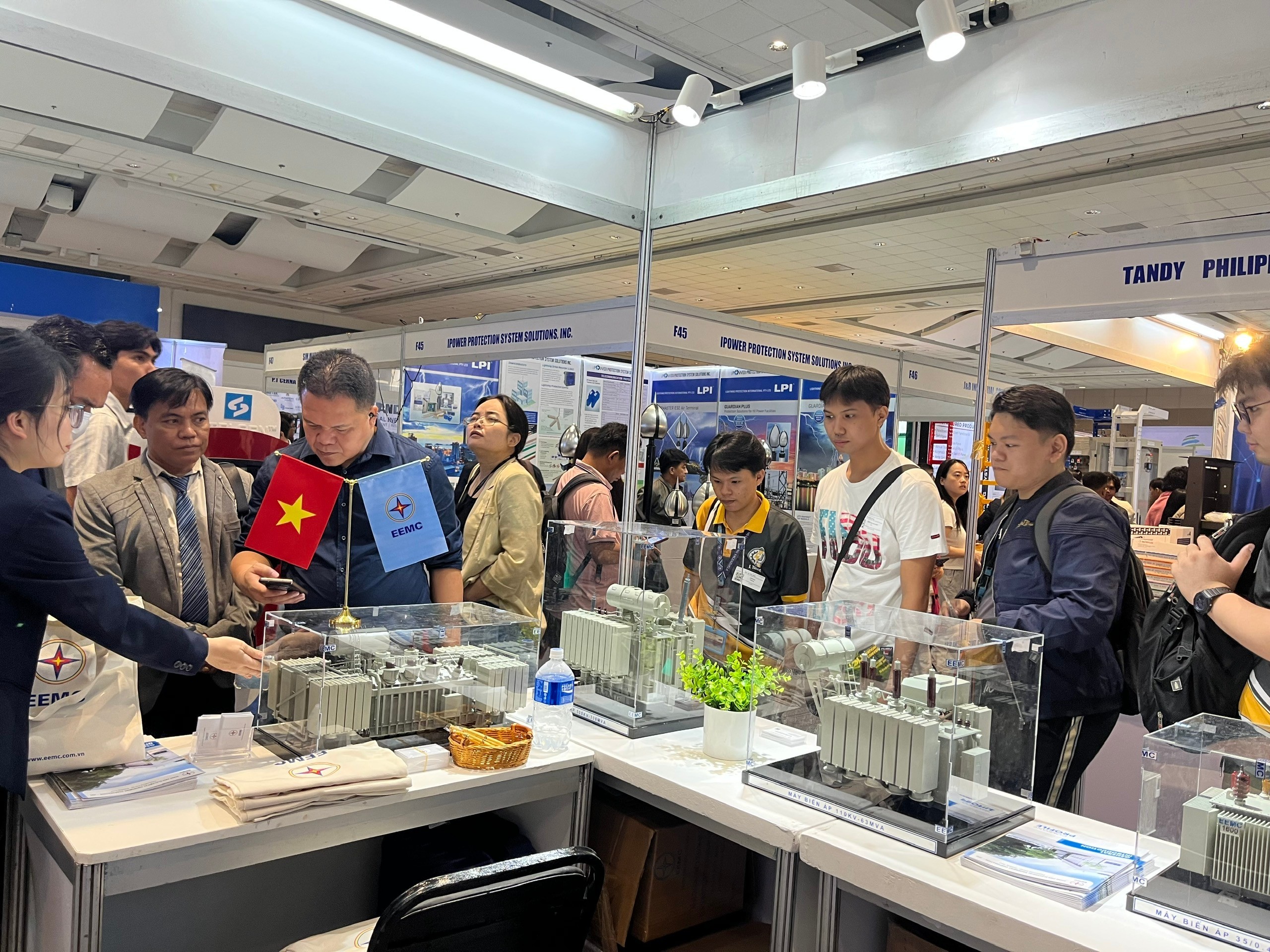 Gian hàng của EEMC đã thu hút đông đảo chuyên gia, kỹ sư và đại diện các tổ chức năng lượng đến tham quan, trao đổi và tìm kiếm giải pháp. Nhiều khách hàng đặc biệt ấn tượng với sản phẩm máy biến áp 300 MVA – 500 kV do EEMC tự chủ thiết kế, chế tạo và tin tưởng thương hiệu EEMC sẽ sớm phát triển mạnh mẽ tại Philippines cũng như các nước khác trong khu vực.